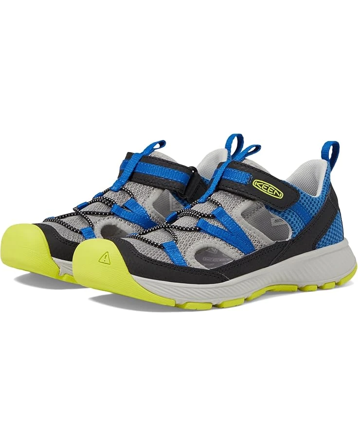 - Designed to match your kid’s everyday comfort and style, the KEEN® Kids Motozoa Sandals come with breathable mesh lining that offers breathability. The fixed lace-lock bungee closure with an adjustable hook-and-loop strap offers a perfect fit. These sports sandals feature an EVA midsole that provides lightweight and responsive cushioning. Get your kid ready for a comfortable day out by wearing these tie-less sandals.