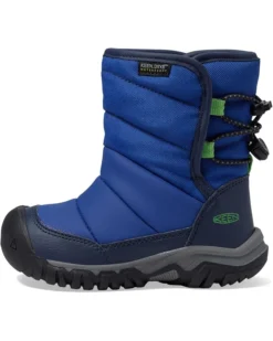 - Let your kid enjoy the first snowfall of the season by wearing KEEN® Kids Puffrider Waterproof boots. Crafted from textile upper, lining, and insole; it secures with a bungee lace and toggle. The boots feature a round toe, calf-high shaft, and quilted design.
