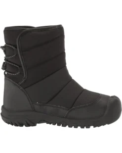 - Winter-proof your little one’s feet with the KEEN® Kids Puffrider Waterproof. This boot has a waterproof synthetic and textile upper, fleece lining, and multi-directional lug pattern for superior traction. It possesses lace-lock bungee closure.