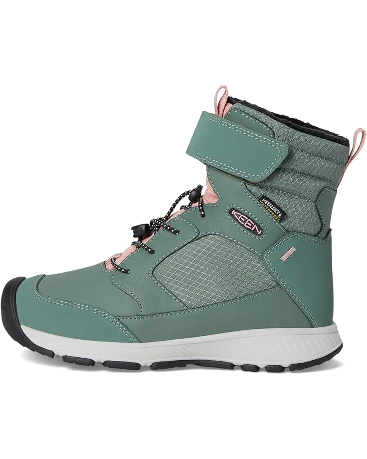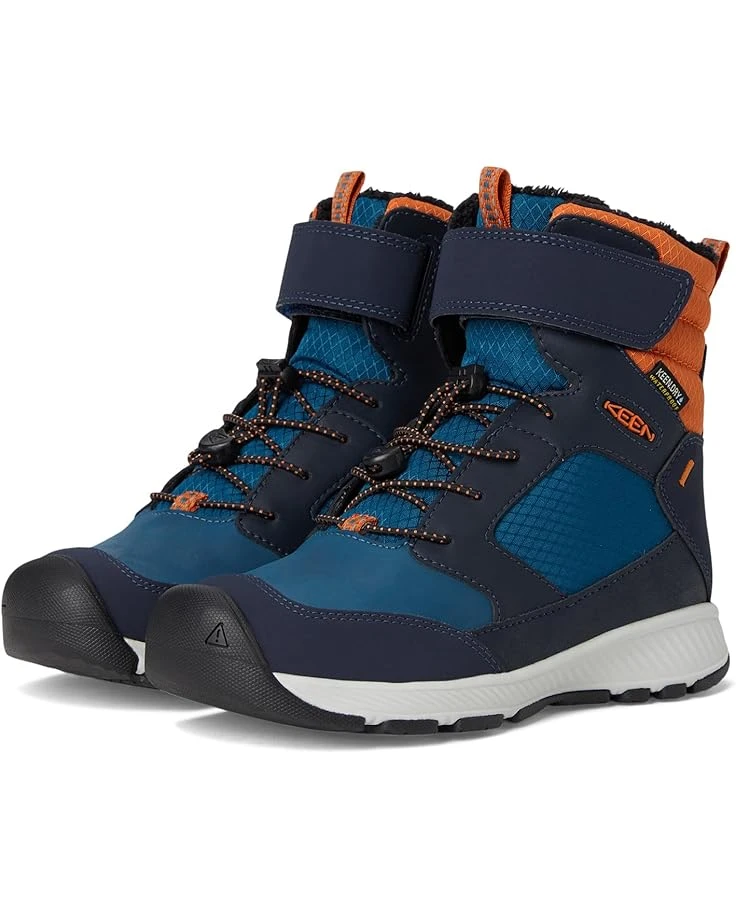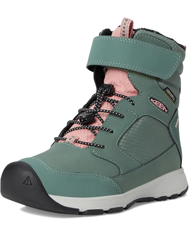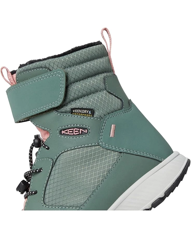 - They will be able to take on the elements in the Keen® Kids Skua Winter Comfortable Insulated Waterproof boots. These boots offer a hook-and-loop strap with quick-cinch bungee lacing for easy on and off, round toe silhouette, a leather and synthetic upper, textile lining and insole, and pull tabs in front and back for easy entry.