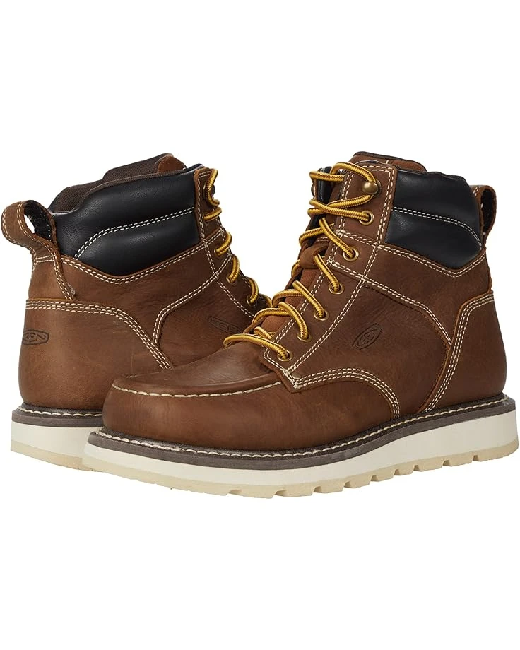 - The KEEN® Cincinnati 6″ Soft Toe work boots have the electrical hazard protection, interior comfort, and slip-resistant outsole that will have you performing at your best every workday. Featuring a full grain waterproof leather upper, injected polyurethane midsole, lace-up closure with dual-purpose metal lace hooks for a secure fit, and a shellback heel support for added stability.