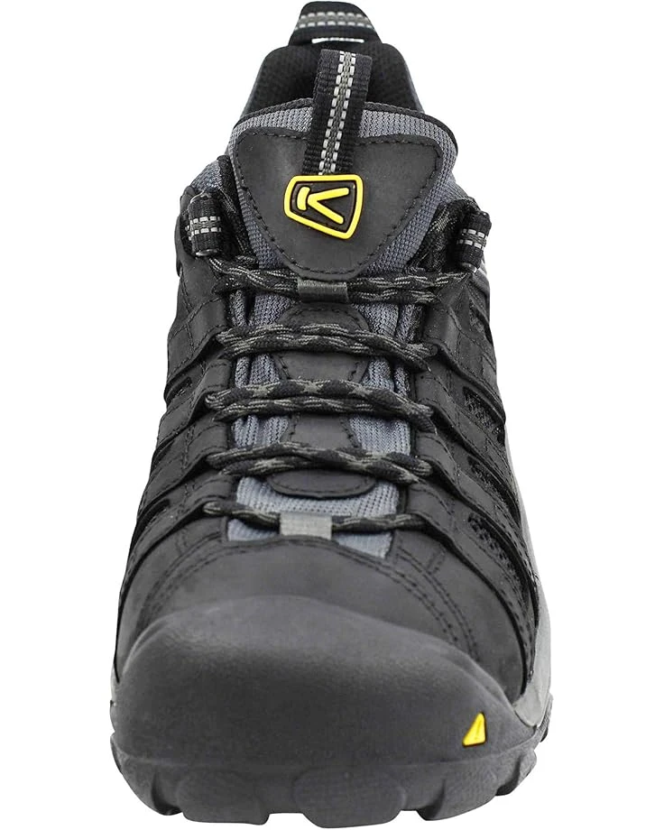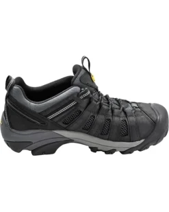 - Update your work shoe with long-lasting KEEN® Utility Flint Low shoes for superior safety protection, and stability. These lace-up closure sneakers feature a water resistant leather and mesh upper, mesh and moisture-wicking textile lining, and removable polyurethane insole for a drier, more breathable foot environment.