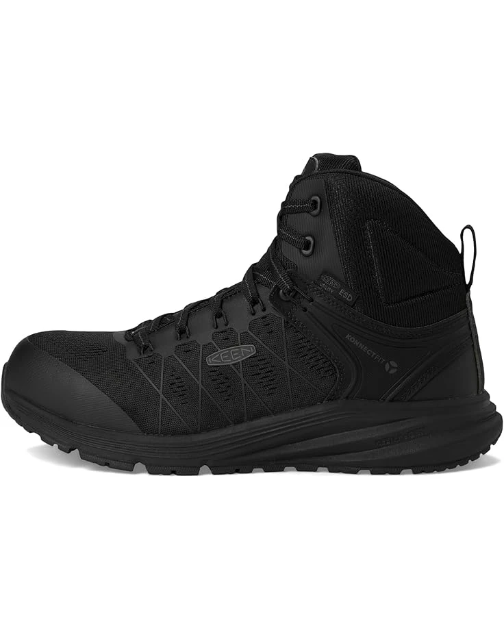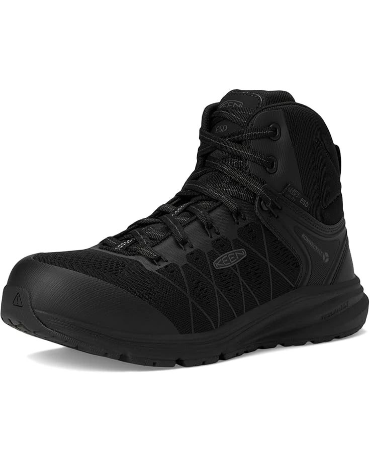 - The KEEN® Utility Vista Energy Mid ESD is the ideal union of durable, protective light duty work boots and comfortable, laid-back sneakers. Featuring KEEN.ReGen midsole for all-day comfort, and ESD-rated outsoles for added protection. Made with durable, water-resistant leather upper and featuring a moisture-wicking lining, the ankle-high footwear is built in KEEN’s traditional wider footwear form. These dependable work shoes are great for medium-duty work in construction, utilities, landscaping, transportation, maintenance, and manufacturing.